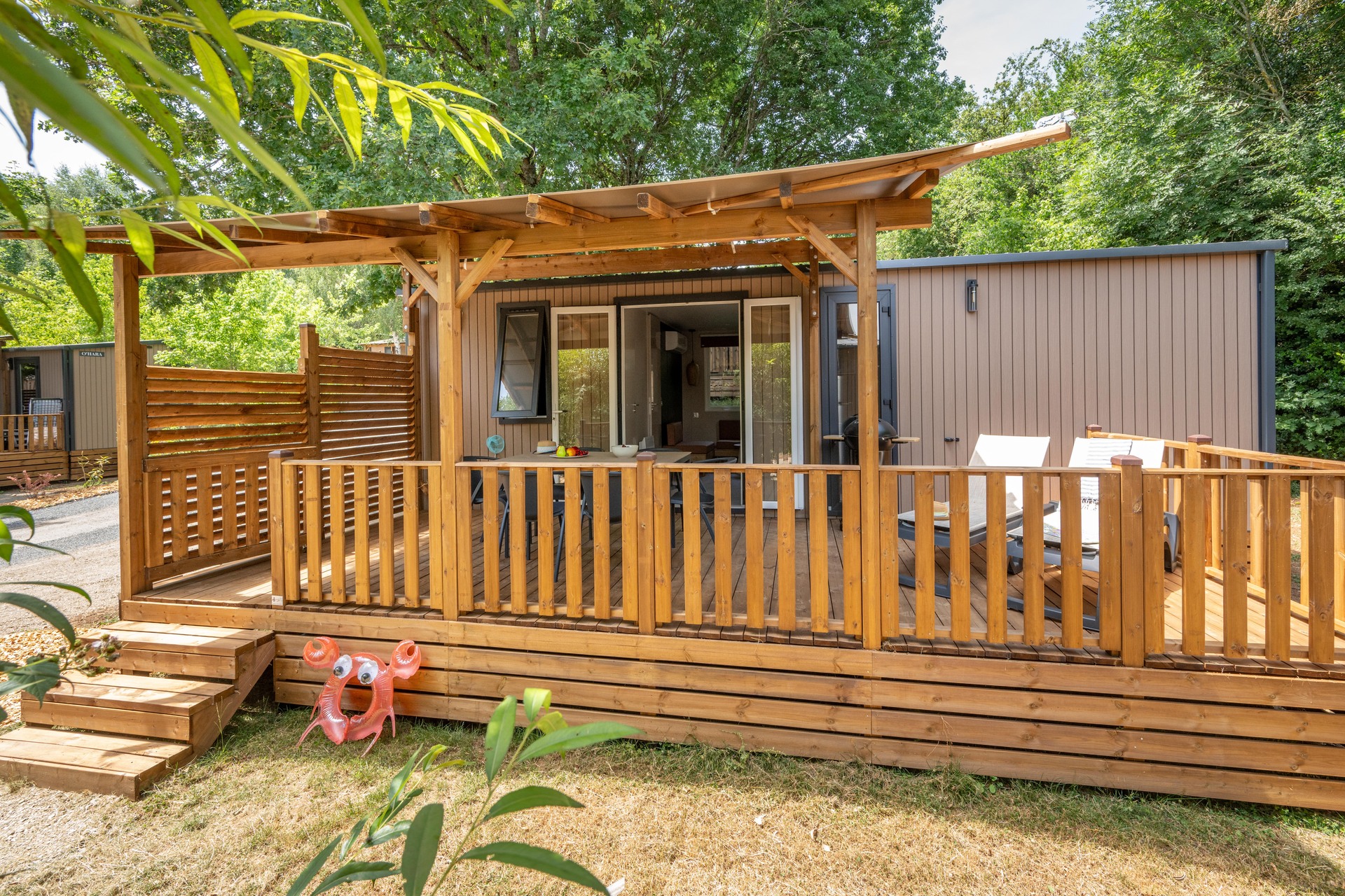 Para una estancia de alta gama en nuestro camping del Aveyron, ¡la mobil-home Privilège es el alquiler de ensueño que necesitas! Este alojamiento tiene todo lo que necesitas para pasar unas vacaciones de lujo increíbles. Este alojamiento moderno, con sus colores de moda, es una auténtica invitación a evadirse: habitaciones confortables, una cocina equipada y un amplio salón te garantizan unas vacaciones sin igual. Todo el mundo estará de acuerdo en que la terraza cubierta exterior es una gran ventaja de este mobil home. El mobil home dispone de aire acondicionado y televisión.